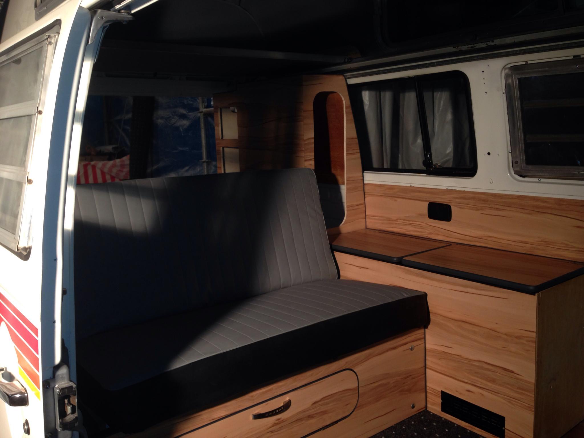 Hi, ich habe es mit den 3 fach verleimten Holzplatten gemacht , so wars Original und sie werden bis heute bei Wohnmobilausbauten genommen , als Furnier habe ich Resopal direkt Furnierplatten genommen 0,8 mm stark es stehen verschiedene Holzdekore zur Verfügung . Stellenweise konnte ich die Original Westfalia Ausstattung retten und habe die mit dem dünnen Platten beklebt , habe aber auch einen Schrank original nachgebaut.. Den Himmelstoff Kunstleder , die Seiten habe ich mit gelochtem Kunstleder bezogen , das Kunstleder für die Sitze habe ich auch günstig im WWW gefunden und dann zum Sattler gebracht und denkt dran wir schrauben am Bully wir haben keine Kohle darum Handeln )
