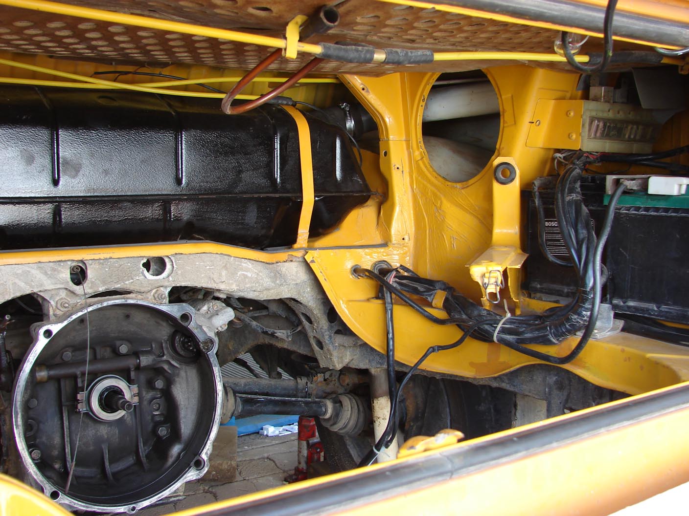 Hallo Forumsgemeinde, ich bin bei meinem Bus beim Tankeinbau angekommen. Mein Bus ist ein T2b von 3/73. Da gehört ein Tank mit zwei Entlüftungsrohren hinein. Der alte ist eher Schrottreif, ich habe aber noch einen sehr guten als Ersatz. Bei näherer Ansicht habe ich festgestellt, dass er vom T2a sein muss. Er hat nur eine Entlüftung und eine geschraubte Tankanzeige. Auch wenn die untere Form leicht voneinander abweicht, sind die äußeren Maße doch identisch. Also müsste er genauso gut hineinpassen.