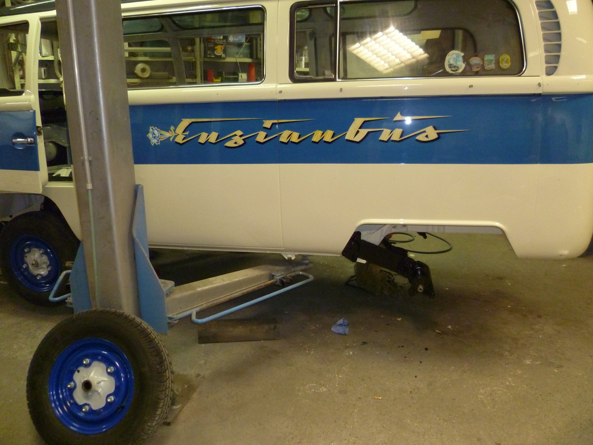 Wahnsinn was für ein super T2 ! Da gibst du echt alles, toll. Schön das dieser seltene ' SambaT2' wieder auf die Straße kommt. Aber eine Kleinigkeit ist mir aufgefallen, die unteren Zierleisten laufen nicht Symmetrisch zu den Rückfahrscheinwerfer hin.........