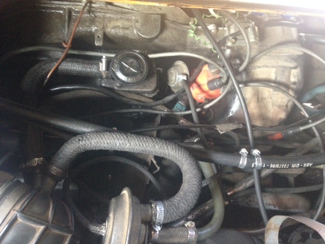 Wenn der Bus trotz fehlenden weißen Kabels an der Zündspule kurz anspringt, kommt das Benzin von der Kaltstartdüse.