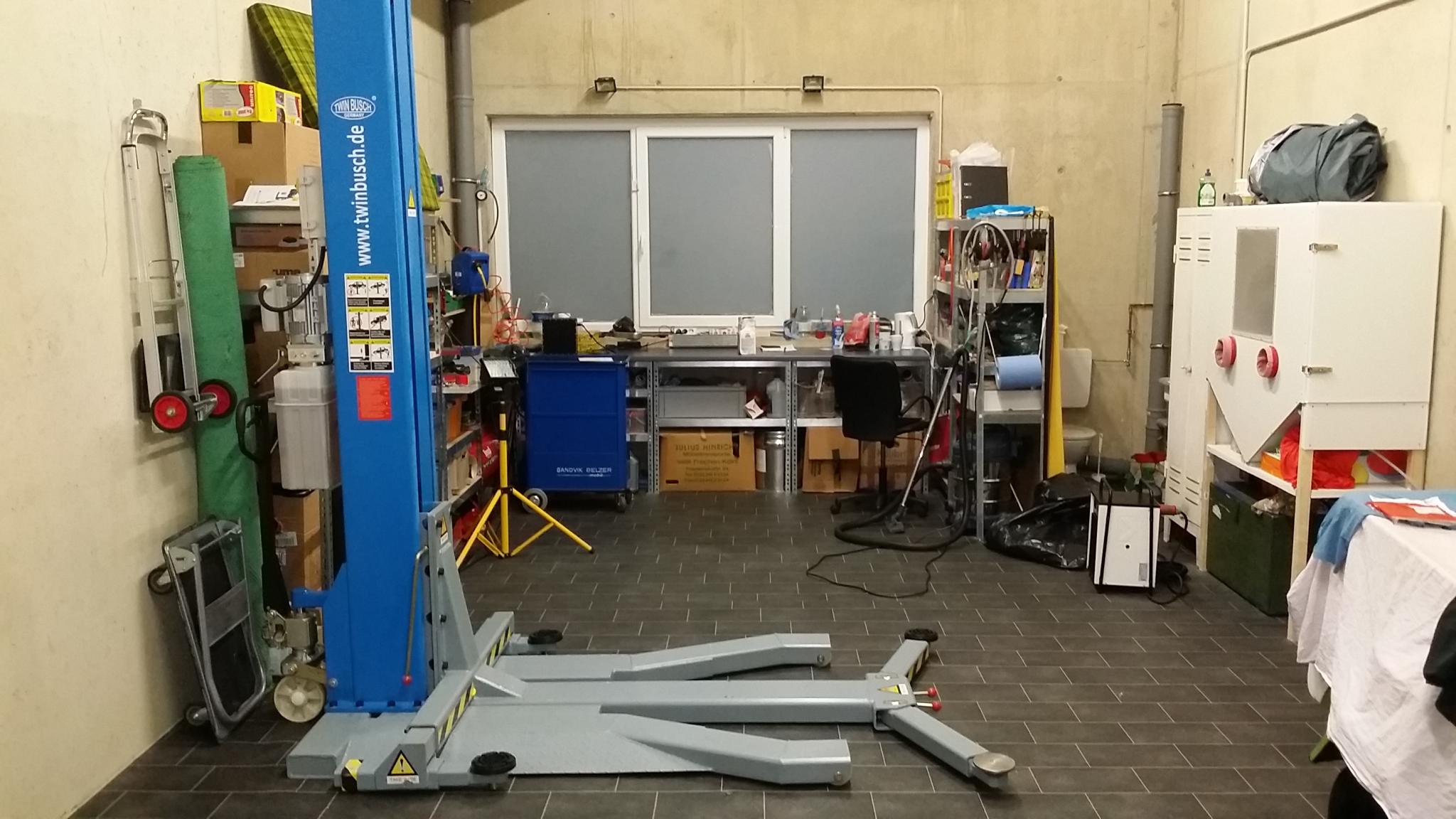 Habe meine neue Twin Busch mobile Einsäulen-Hebeühne aufgebaut und ausprobiert. Ab jetzt wird nur noch im Bulli gelegen und nicht mehr darunter.