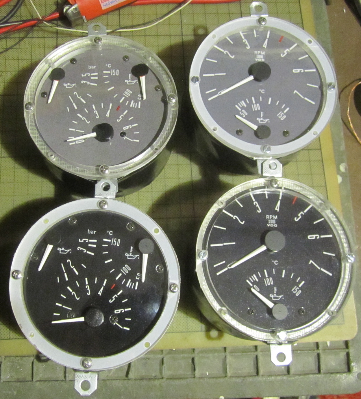 Einmal für das Ziffernblatt und rückseitig für den Stecker und Trägerplatte für die Uhr und Drehzahlmesser.