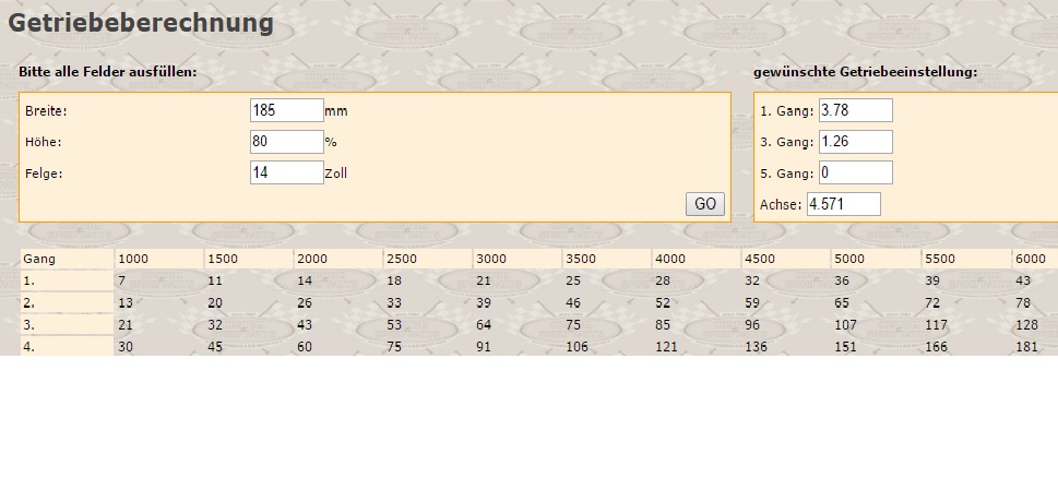 Zur Getriebeberechnung: die Gänge 1-3 sind Käfer Übersetzungen, also nicht wundern, die sind dem Getrieberechner standardmäßig hinterlegt! Aber falls das für Deine 50km/h Messung relevant sein sollte, müsste man das nochmal nachrechnen.