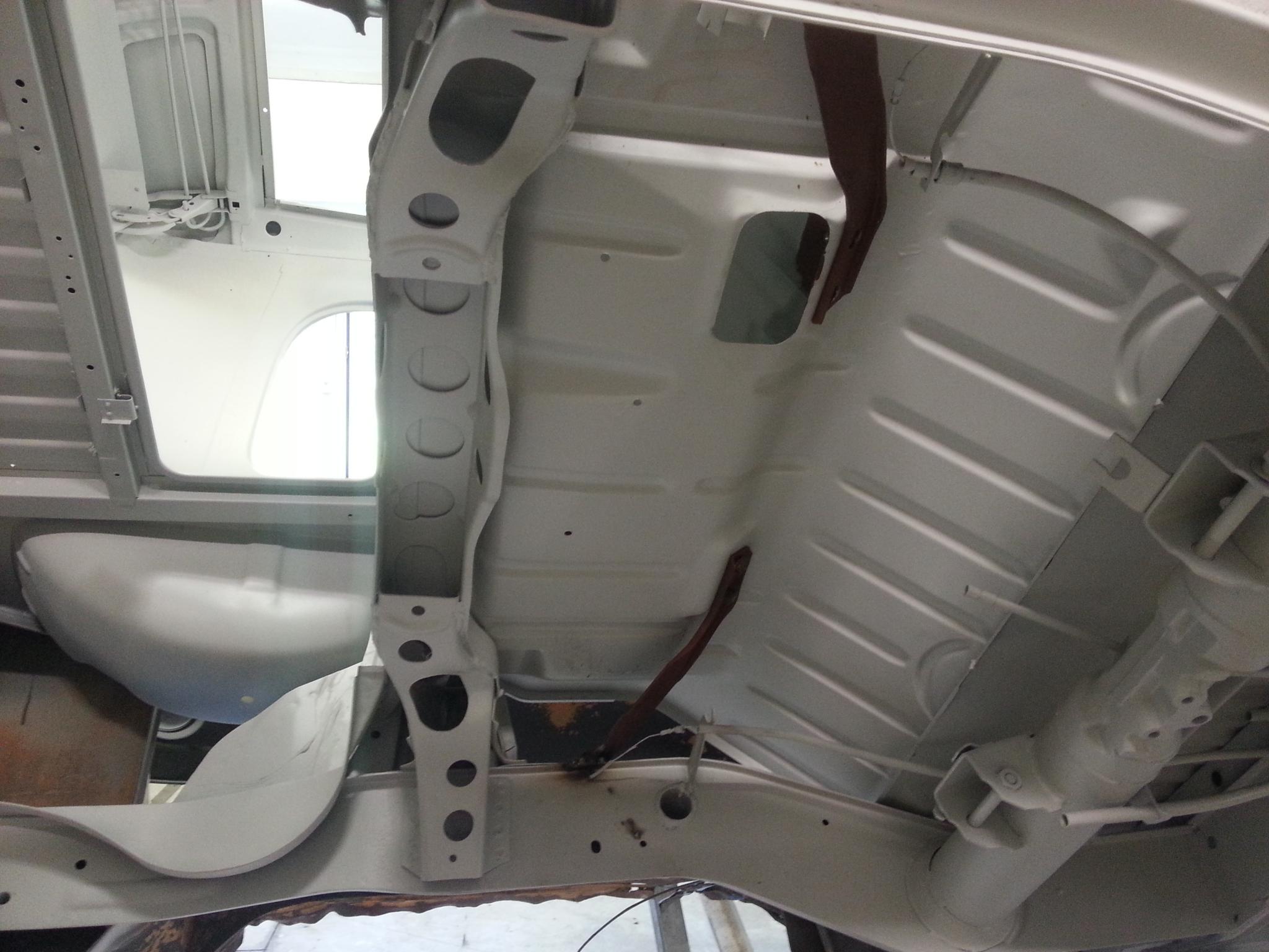 Allerdings ist das austauschen der Bodenhälften, sagen wir mal so, - "Sackgang". Die Bodenhälften gehen noch paar cm in Richtung Motorraum. Quasi endet das Blech, über dem Hinterachsrohr (siehe Foto). Und da hinten ist auch das Y-Verteilerstück von der Warmluftzufuhr an das Bodenblech angepunktet. Und wenn du dann das alte Blech komplett raus hast, musst du irgendwie Druck erzeugen, dass das Blech auf den darunter liegenden Querträgern bündig aufliegt. Es sei denn du hast ein Punktschweißzange mit extreeeeeem langen Elektrodenarmen. Dann ist das alles bisschen einfacher. Mir steht der Bodenhälftentausch auch noch bevor :unbekannt: :unbekannt: