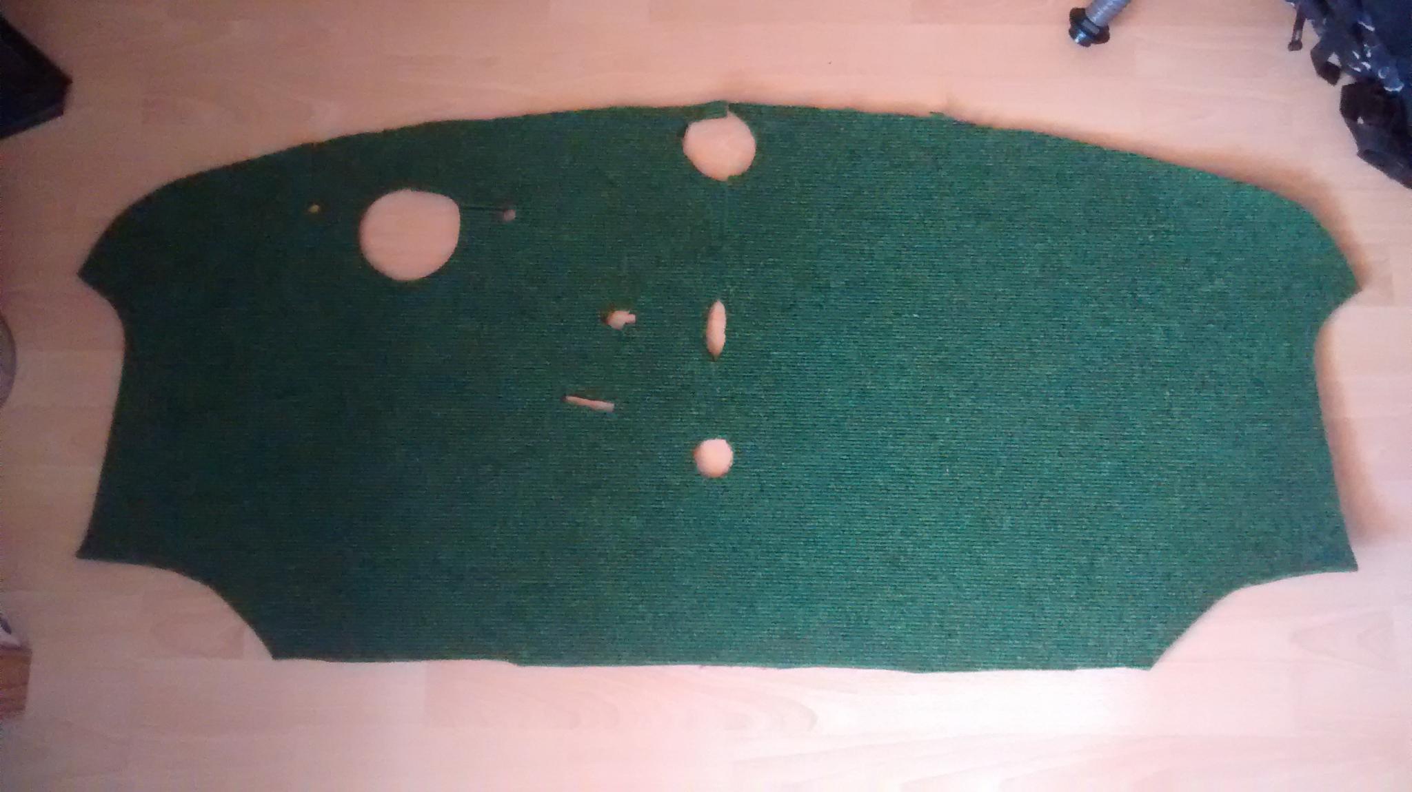 Am Freitag mit einer Papierschablone den Teppich ausgeschnitten.