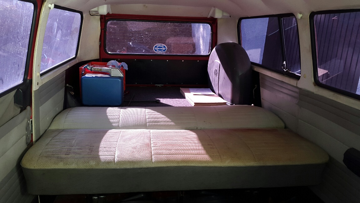Weiterhin lag dem Bus Ersatzbezug bei, der aber um wenige cm zu klein ist. Handelt es sich hier um die orginale Rückbank oder einen Umbau?