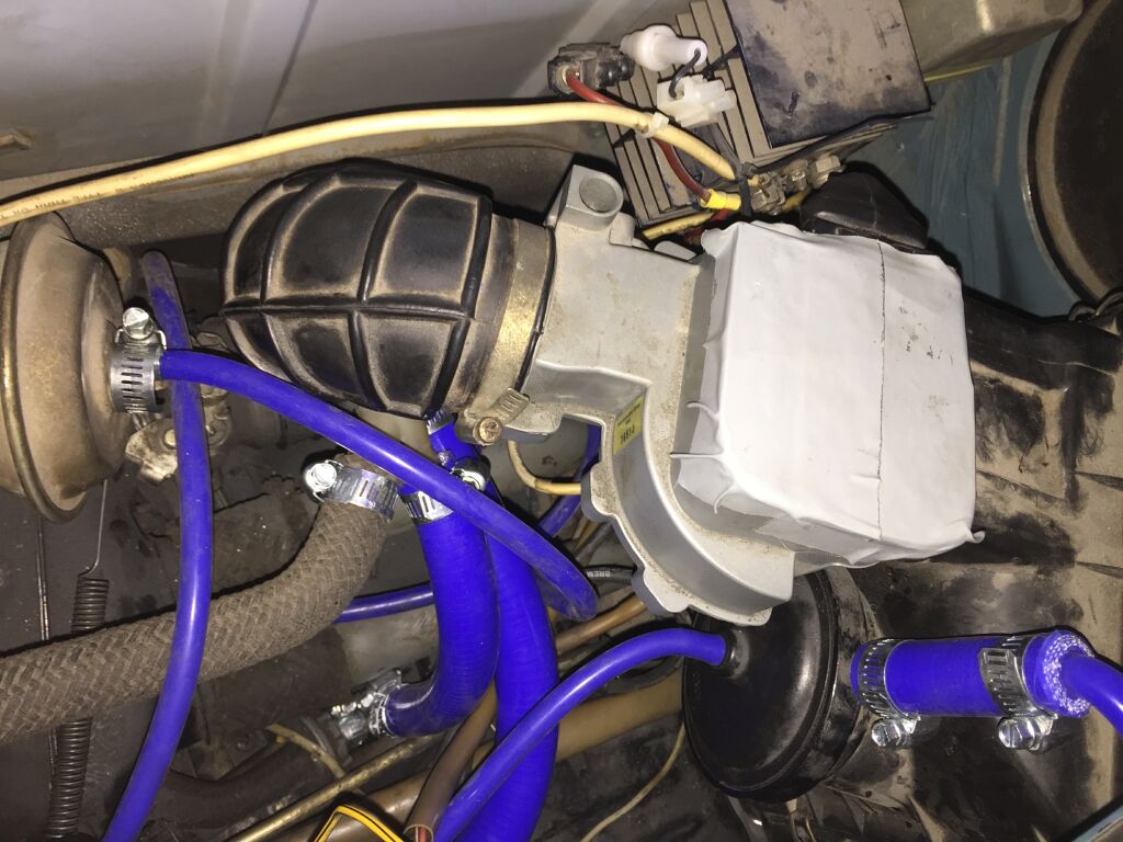 Versteckt ist der Schlauch am Zusatzluftschieber, der Geht vom Ansaugschlauch zwischen Luftfilter und Drosselklappe ab.