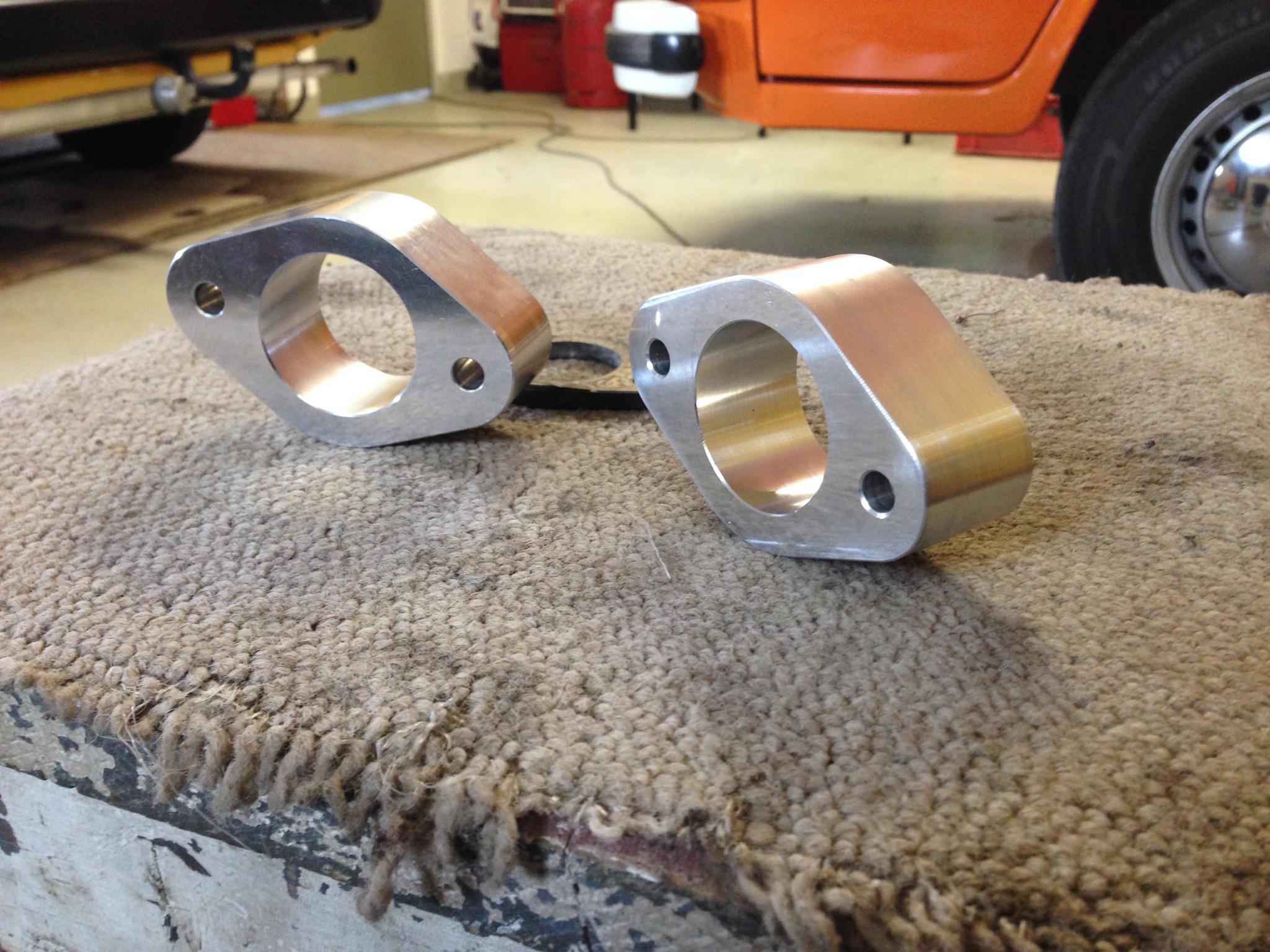 hab mir gestern nochmal einen Satz für ein anderes Auto machen lassen, nachdem die Wirkung ja so gut war, darum kann ich zeigen wie sowas hier bei mir aussieht, sollte jeder CNC Fräser/Dreher bei Euch vor Ort auch so machen können, als Vorlage einfach ein Pertinax Zwischenstück abgeben und das mit 30oder 40mm Höhe ordern