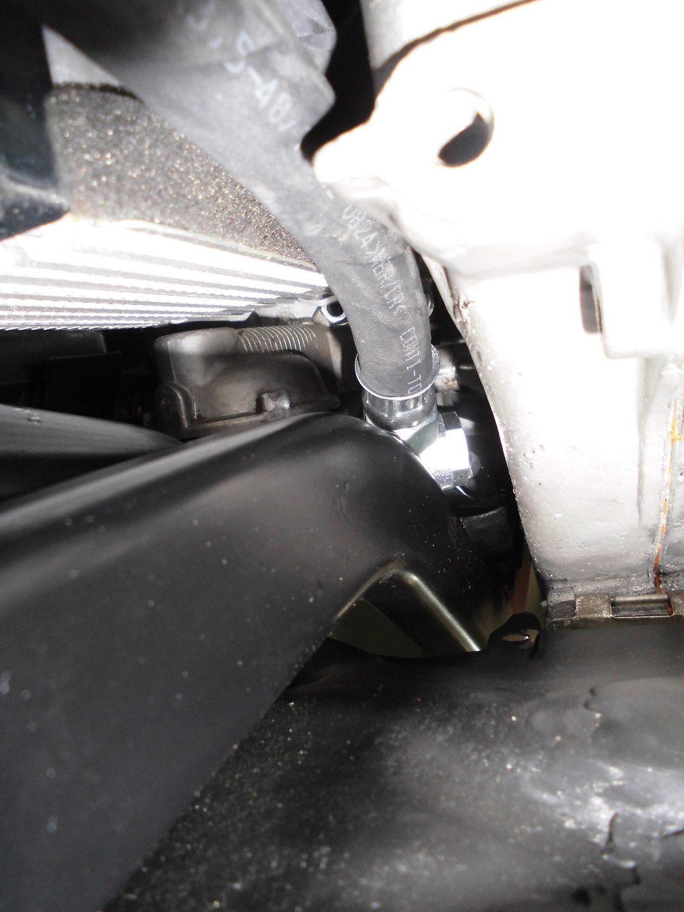 Undicht ist der Schlauch gewesen, den ich an der Traverse des Motorhalters befestigt habe.