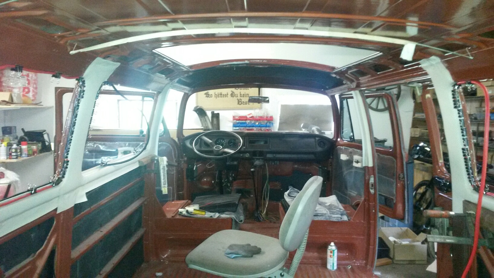 Nachdem die Technik und die Elektrik soweit fit sein sollte (ein paar Sachen habe ich mal verschoben, wie der Umbau auf Intervall) ging es an die Innenverkledungen und den Himmel.