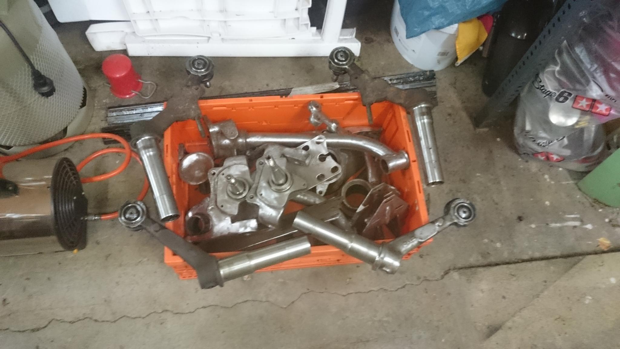 Motor so wie Getriebe sind vorher schon rausgefolgen, bevor es ins selbstgeschweisste Drehgestell ging.