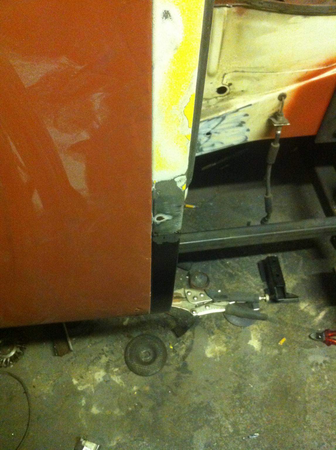 Alter Innenschweller und Schiebetürlaufschiene wurden entfernt und neue eingeschweißt,sowie die B-Säule.