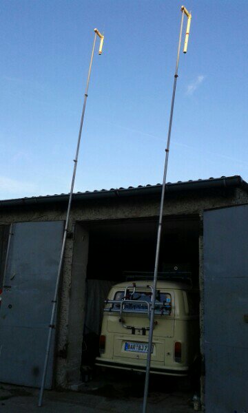 Heute ist der zweite Funkmast bei mir eingezogen. Hat Jahre gebraucht, aber jetzt hab ich beide Originalmasten in der Garage liegen. Sogar mit den entsprechenden Aufsätzen.