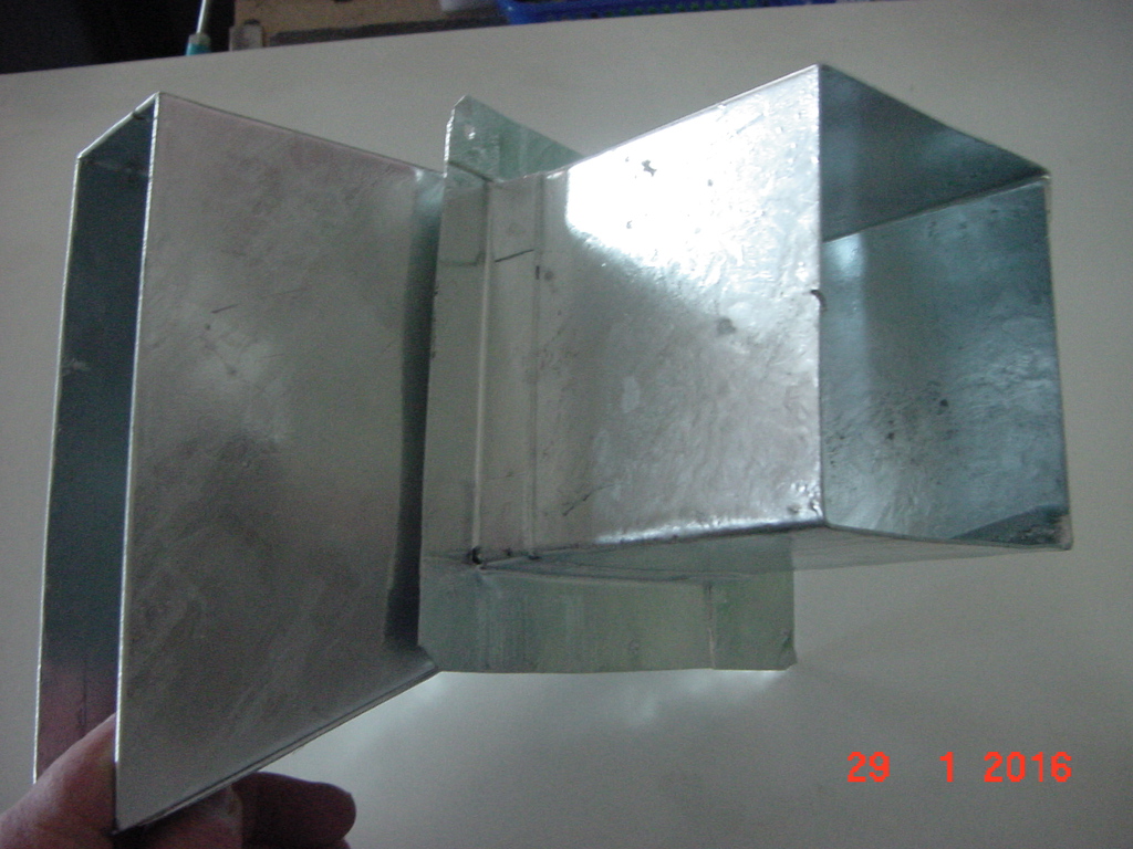 Gasflaschenkastenentlüftungströte angefertigt und gerade vom Verzinken abgeholt. Wegen der Unterflurbleche wurde dies eine angepaßte Konstruktion.