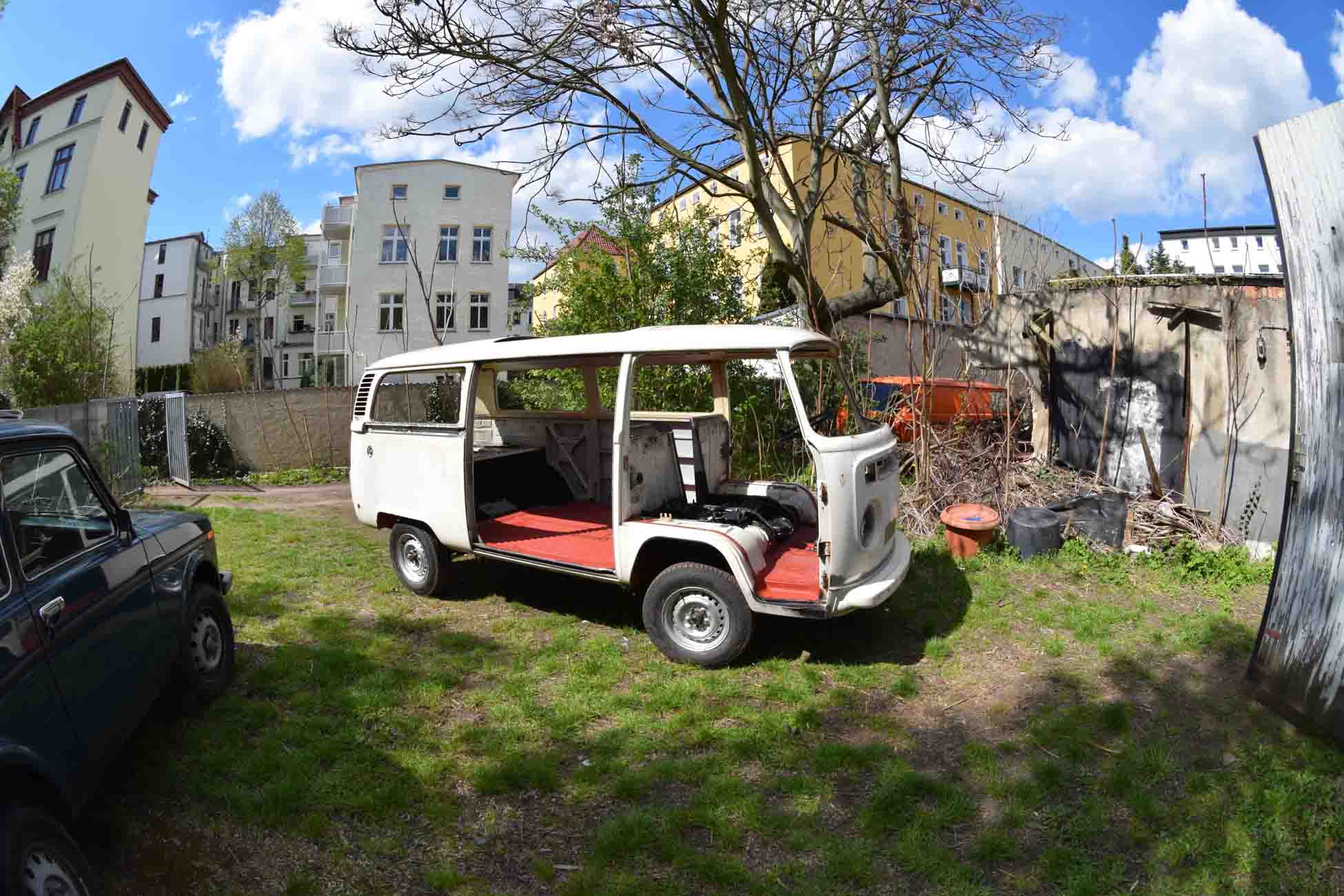 der Bulli steht beim Lackierer / Sandstrahler!