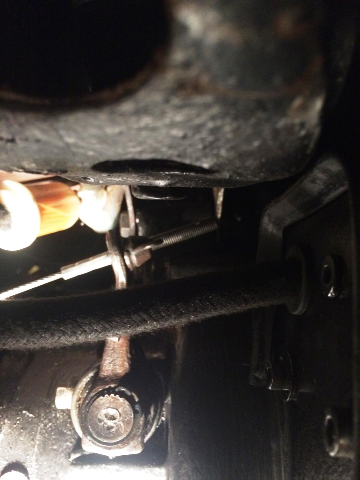 soooooo... Motor läuft, Kupplung trennt!!! Anlasser ist ja mittlerweile klar, das war der mit kurzem Ritzel drin. Kaum einen mit langem eingebaut, schon rennt das Moped. Auf dem anhängendem Foto seht ihr die Ausgangssituation. Hebel steht senkrecht, Stell-Flügelmutter bis Anschlag. Denke der Zug ist ziemlich ausgelutscht. Dicke Mutter unter die Stellschraube und dann gings. Zusätzlich ist bei mir der Hebel im oberen Bereich leicht zurück gebogen. Da gehen auch noch mal ein paar Millimeter verloren.