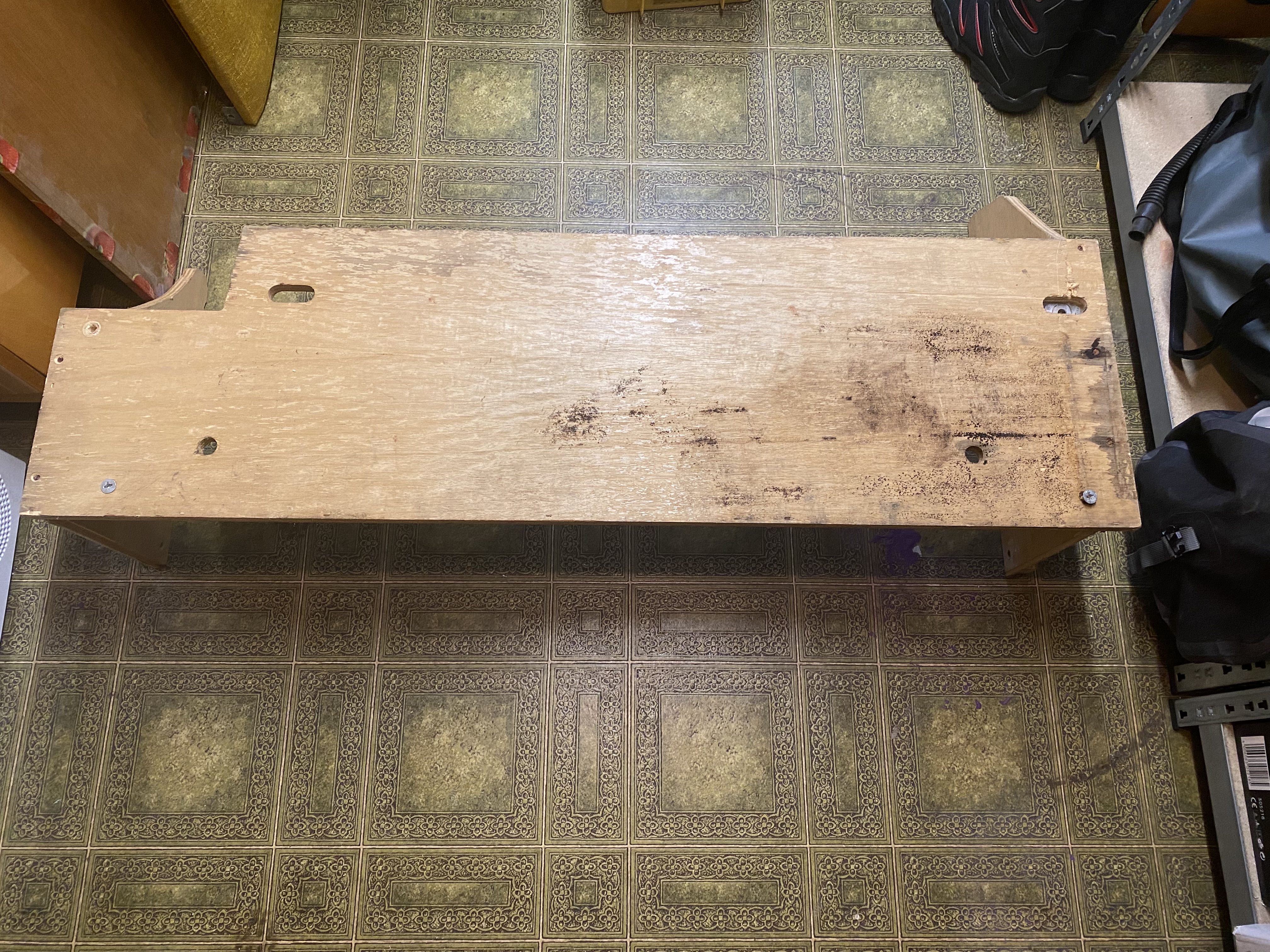 Erstaunt bin ich über die, sagen wir mal, sparsame Verarbeitung der Möbel, die sich auch in der Lochkunst im Boden fortsetzt.