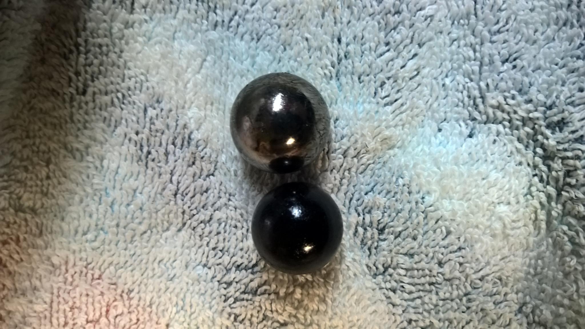 nachdem ich meine Ersatzwellen fertig habe, habe ich die restlichen Teile mal gesäubert und defekte Teile entsorgt. Ich hatte mal vor Jahren eine Teilekiste ersteigert. Nun habe ich zwei Gelenke gefunden, die genau wie Bulliteile aussehen. Aber da sind schwarze Kugeln drin. Und diese sind auch noch kleiner. Gab es da Unterschiede ????