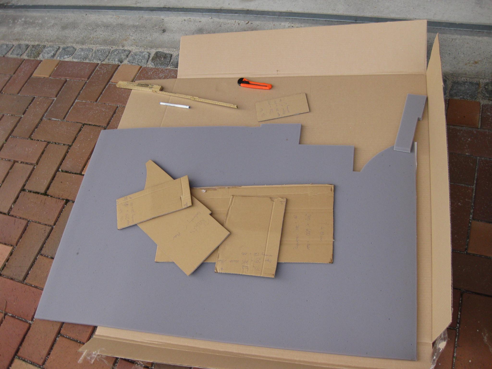 Dann hab ich gemessen, das in CAD umgesetzt und Anfragen gestartet, aber zu teuer. Also Plattenmaterial und selbst zuschneiden nach Muster: