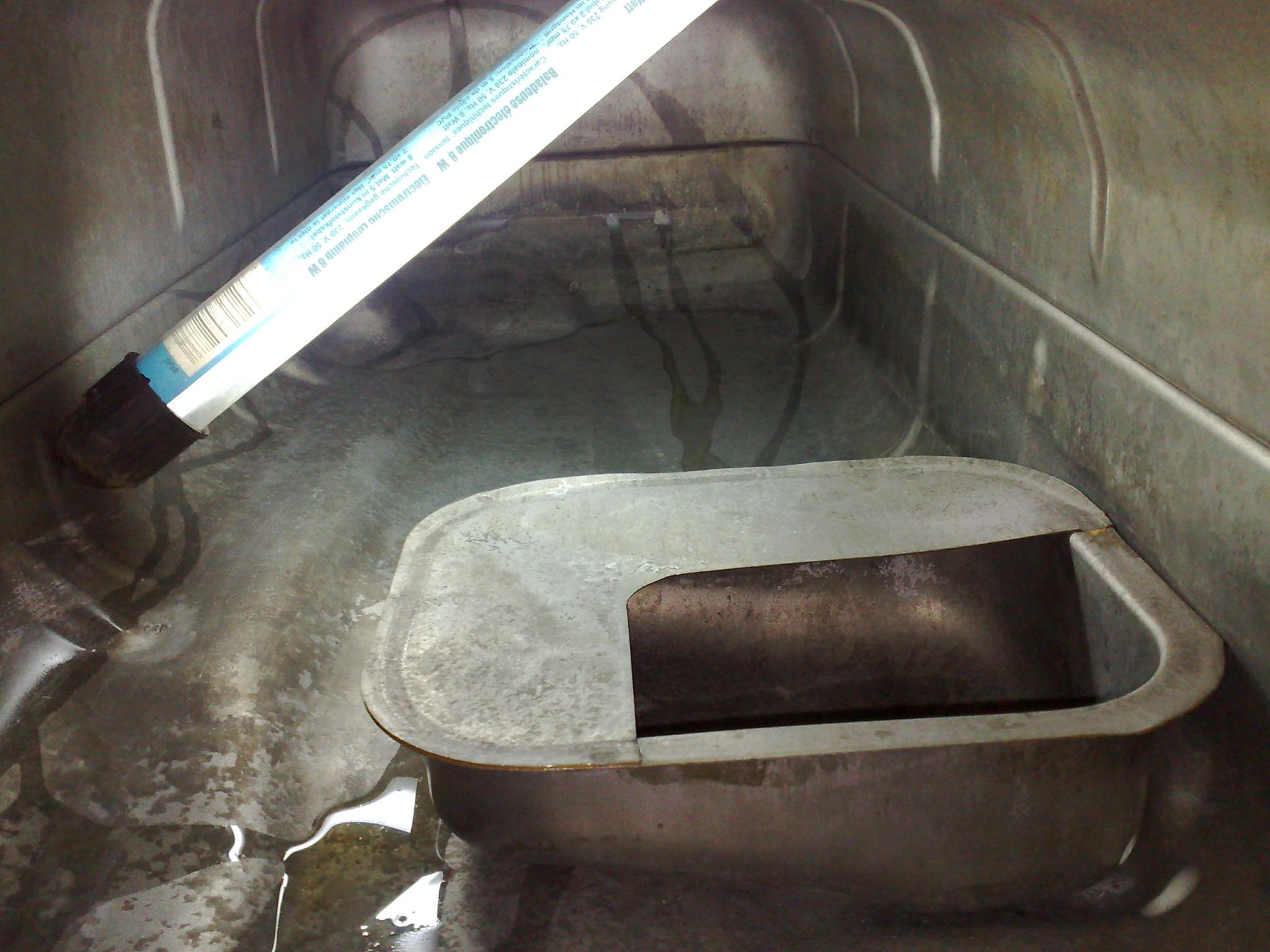 Zum reinigen sollte man den Tank raus nehmen, damit man auch vernünftig schwenken, spülen und kontrollieren kann.