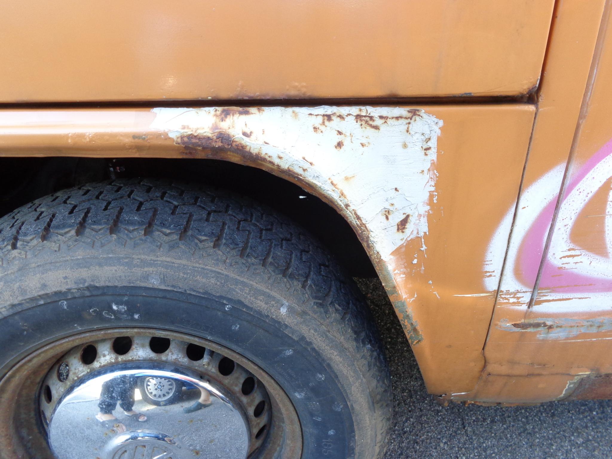 Hier nochmal ein Foto von der Seite, auf der der Alien draufgemalt ist, <br />das ist innen die Stelle, an der die Schweißpunkte zu sehen sind. Meiner<br />Meinung nach die übelste Stelle am Auto