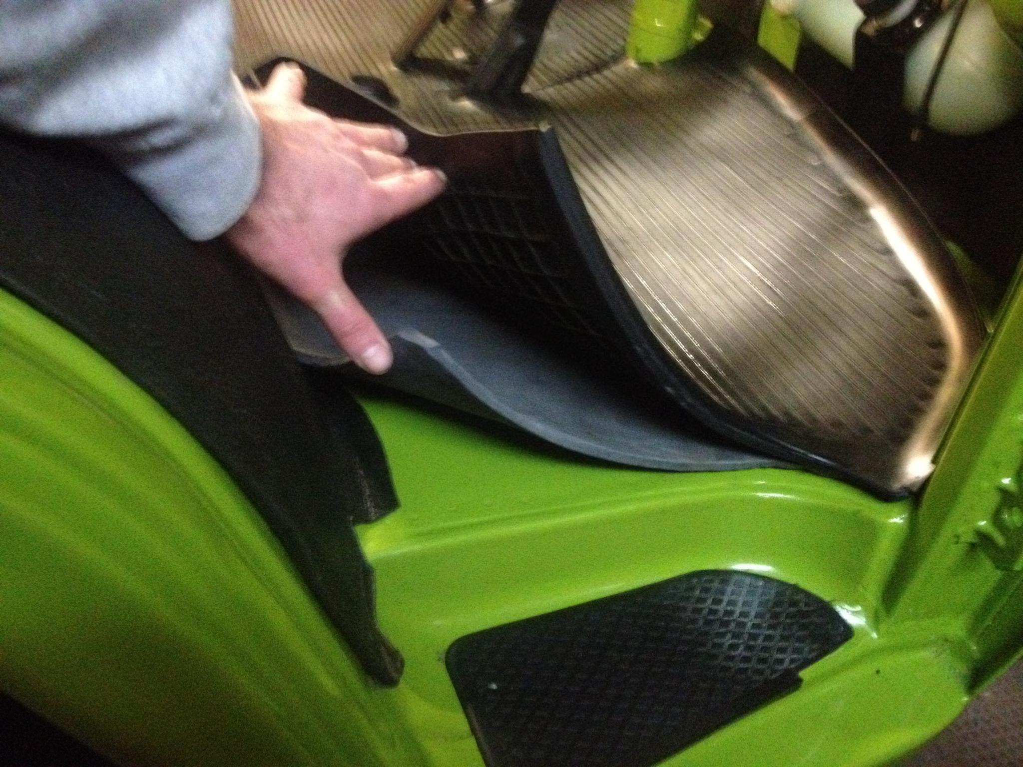 Ansonsten habe ich die Gummimatte im Fahrerraum samt Durchgang gesäubert und eingelegt. Drunter liegt nun 8mm Armaflex passend geschnitten auf dem mit transparentem Wachs behandelten Boden. Der Aufbau sollte funktionieren, sowie wasserabweisend und isolierend sein. Der Boden wird auch nicht mehr von dem Gummifitter der Matte belästigt.