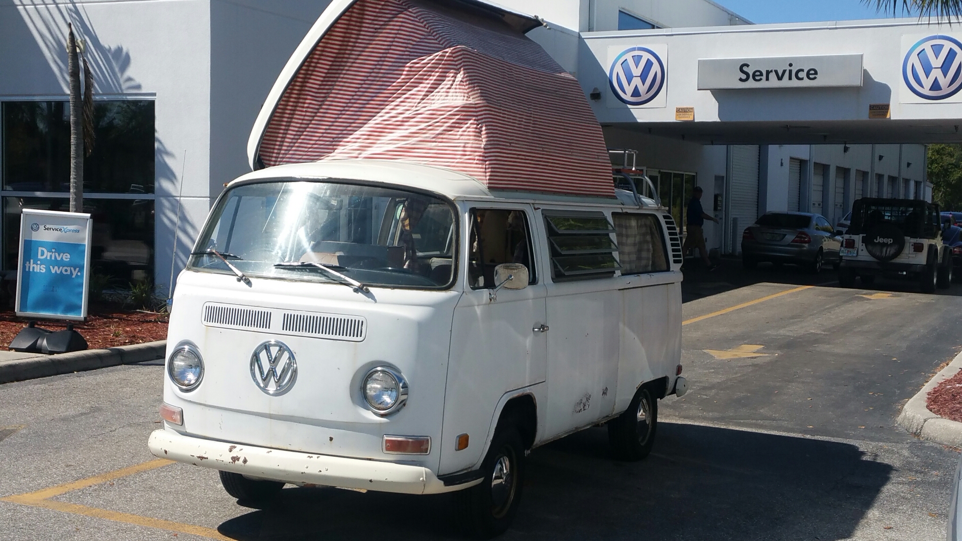 heute in Ft. Myers Florida beim VW Dealer entdeckt. 72iger Dormobile mit überholtem Typ4 Moped und neuen Reifen. Deiskopf kann zuschlagen :gut: Kontaktadresse hab ich. Verkäufer dachte dass ich ihm heute den T2 abkaufe da die VW Geschäfte schlecht laufen momentan. hab ihm gesagt dass in Germany viele Leute auf der Suche sind nach so einem Fahrzeug. er hat mir gleich die ganze Innenausstattung vorgeführt :oops: