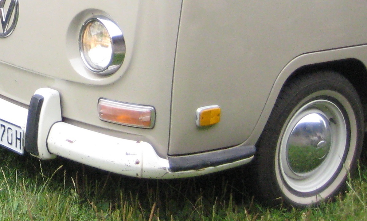 Hinzu kommt, dass der geringe Abstand der Stoßstange zur Frontmaske darauf schließen lässt, dass der Bus mal einen leichten Auffahrunfall hatte und die Stoßstange sich dabei etwas verschoben (und möglicherweise nach oben gedrückt) hat.
