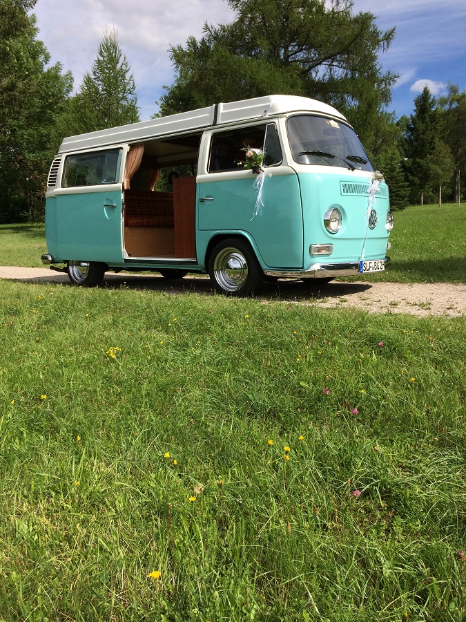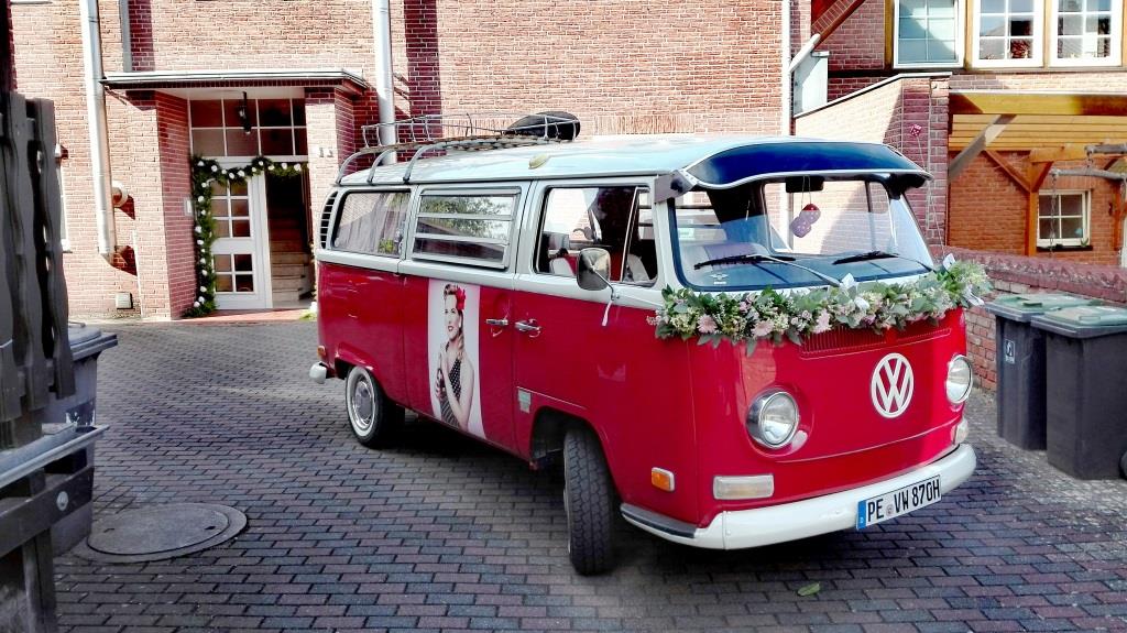Gestern wars auch bei mir soweit. Meine erste Hochzeit mit dem Bulli. Der alte Ofen war noch nie so herausgeputzt: