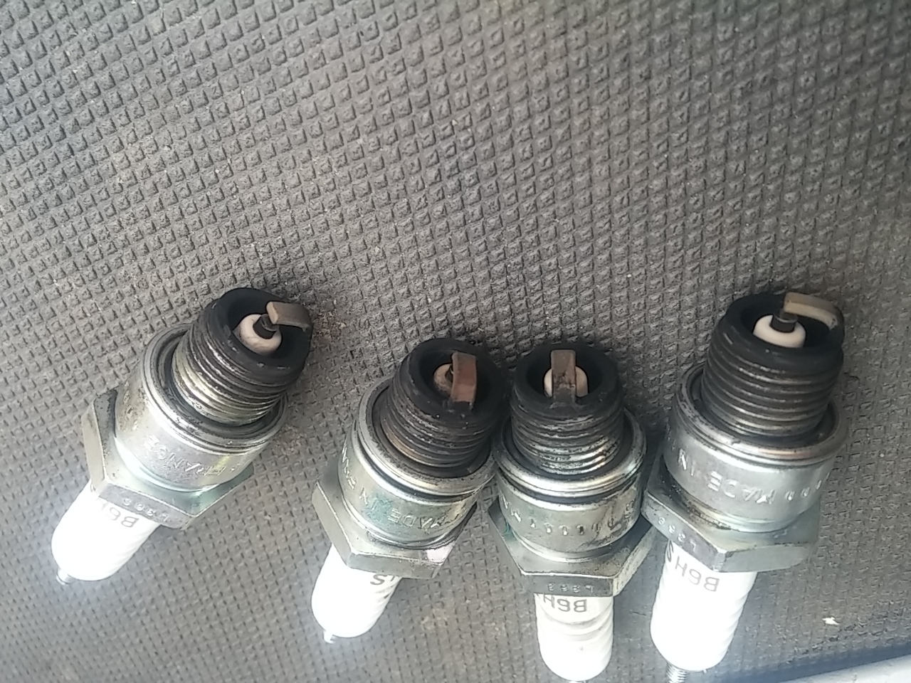 Anbei ein Foto vom Kerzenbild. Was kann die Ursache sein? Vergaser zu fett eingestellt? Pumpe undicht?