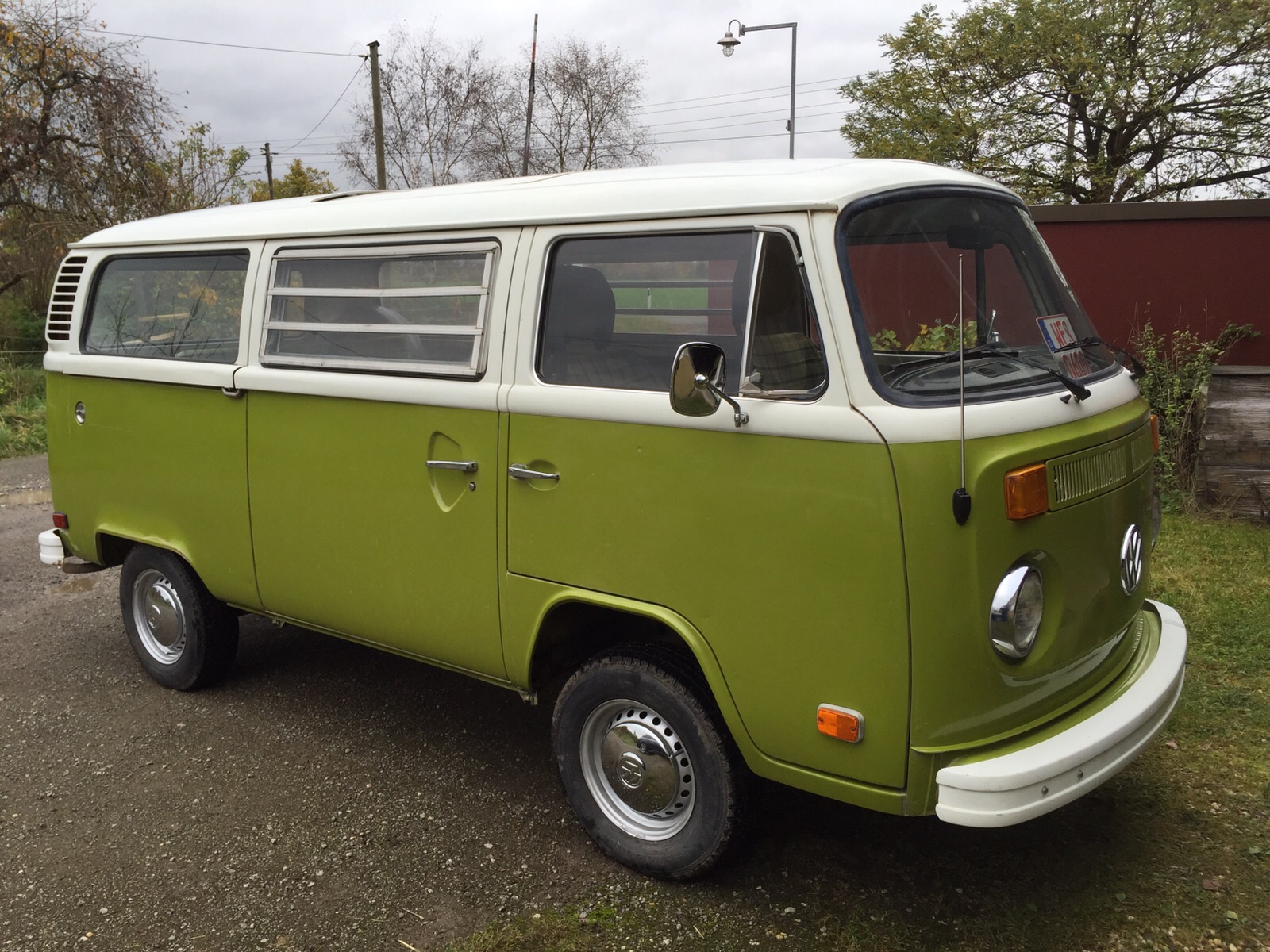 Seit November 2015 habe ich meinen 1977 T2b mit Stahlschiebedach. Er ist ein "Reimport" aus Albuquerque/New Mexico. Hat dort beim Händler gestanden. Gebaut am 29.06.1977 (meine Frau und ich haben gestern erstmal ne Flasche Wein auf den 40 Geb. getrunken) und am 01.07.1977 verschifft nach Los Angeles. Leider ist die Vita auf den letzten Verkäufer beschränkt - trotzdem - hab ihn bei Bugnet gesehen Taigagrün und Pastellweiss mit Schiebedach. Innen auf Camper umgerüstet. Alles Westfalia "Berlin" Teile bis auf Herd und Spüle. Innen ziemlich runtergekommen, aber was solls! Sofort beim Vekäufer Claus Wiemann in Moers angerufen. Der war von einer Feier noch etwas benebelt, aber die ersten Aussagen haben sich später als richtig herausgestellt. Also hingefahren und was soll ich sagen, zur Freude meiner Frau (Ironie) sofort gekauft! (Inzwischen liebt sie ihn und will ihn auch nicht mehr hergeben! Typisch Frau !) ich hab ihn inzwischen innen gut in Schuss (das Schiebdach zickt noch manchmal) die Vergaser sind gerade bei Guido Wensing (Grüße an dieser Stelle). Herausgeholt habe habe ich neben diversen Baseball Eintrittskarten und Kleingeld ca. 1,5 10 Liter Eimer Wüstensand! (Preis für überhaupt nicht verrostet zu sein)