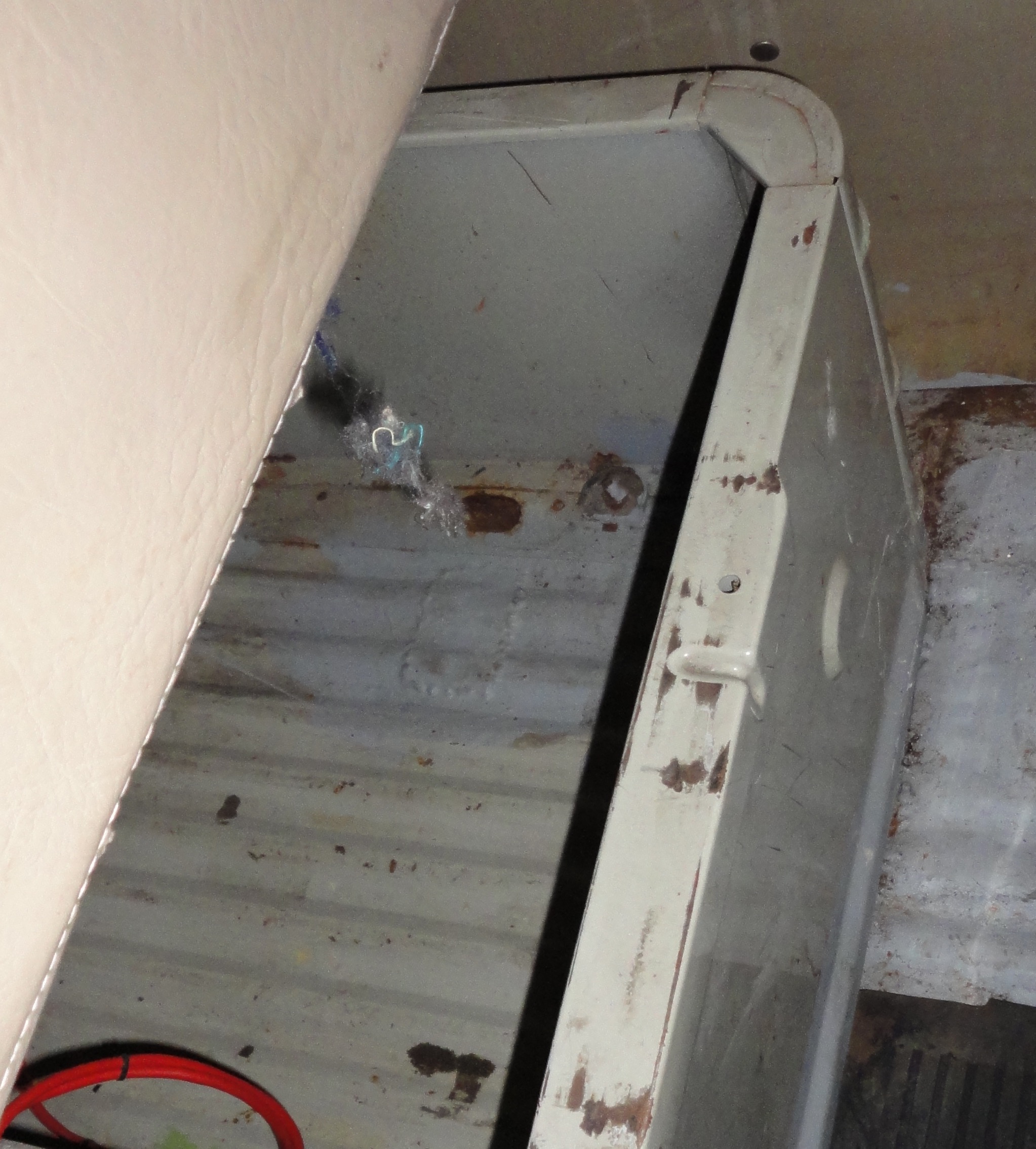 Ich suche gerade ein Foto von der originalen Befestigung des Sitzkastens hinten in der Doka. War das mit einer Flügelschraube?