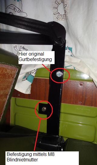 Die untere M8 Schraube sitzt ja im Gewinde der Halterung für die Lehne der 3-er Rücksitzbank.