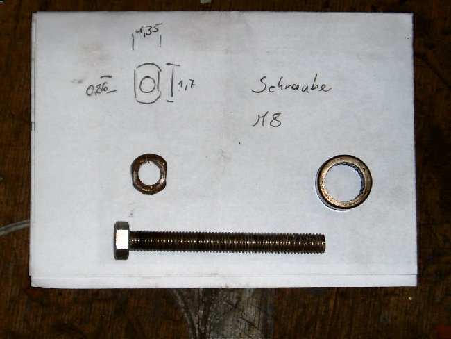 man braucht nur eine lange M8er Schraube und eine passende U-Scheibe mit ca. 17mm Außendurchmesser