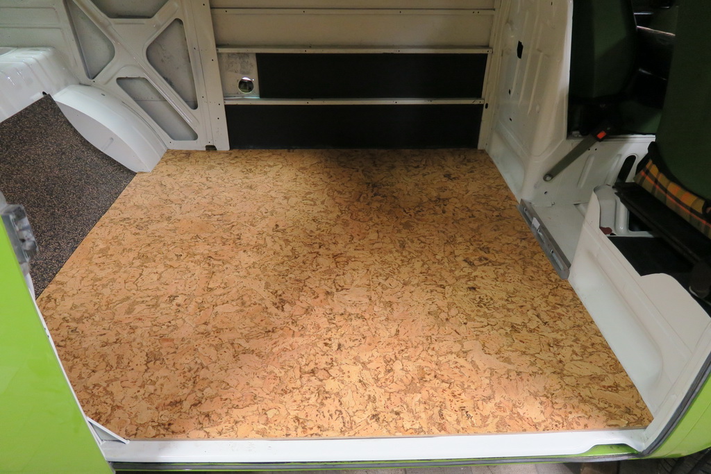 Boden ist fertig. Bodenaufbau Unterbodenwachs 8mm Gummikork, 4mm Hartfaserplatte, 4mm Korkboden.