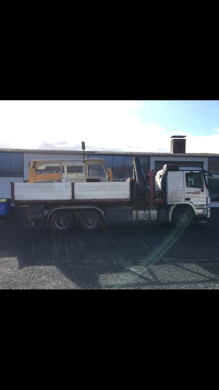 Fahrzeug zur Werkstatt geschleppt, damit die Karosserie endlich gemacht wird.