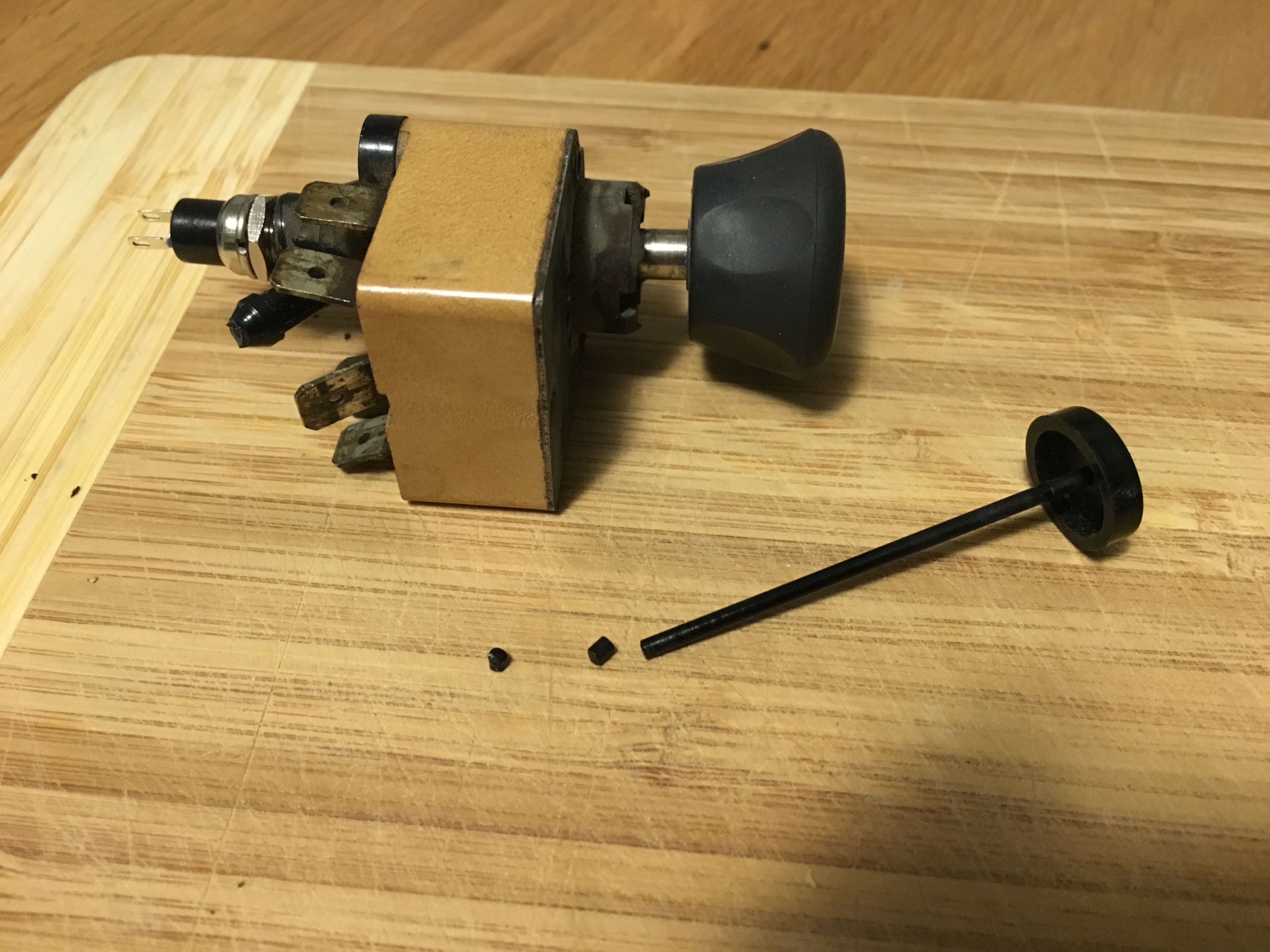 3. schrittweise auf 6mm aufgebohrt 4. den Mini-Schalter eingeschraubt 5. den Stab ein wenig eingekürzt 6. Fortsetzung folgt...