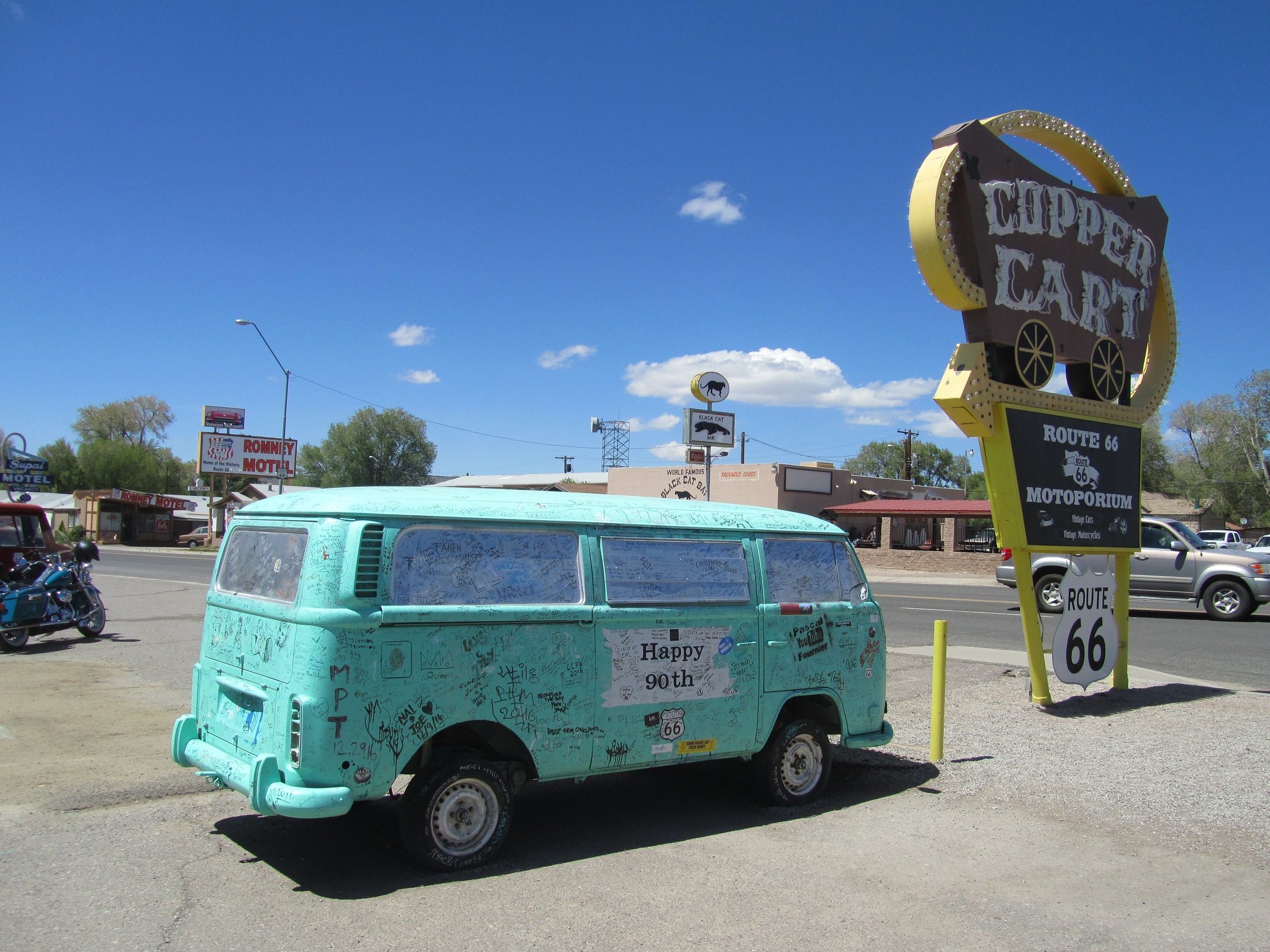 wir waren letztes Jahr auf einer Rundreise im Südwesten der USA unterwegs und trafen in Seligman/Arizona an der "Geburtsstätte der historischen Route 66" u.a auf diesen T2.