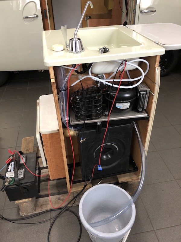 So, ich habe den Schaltplan von Olaf (von Dez.2017) soweit umgesetzt und den Spülenschrank nach meinen Wünschen ein wenig angepasst. Nachdem der originale 30Liter Wassertank einen Riss hatte, habe ich mir überlegt, dass ich lieber einen neuen Tank nehme und mir weniger Wasser auch reicht. Habe dann einen 11Liter Tank eingebaut und der übrige Platz eignet sich auch wunderbar für das Dometic Kühlaggregat.