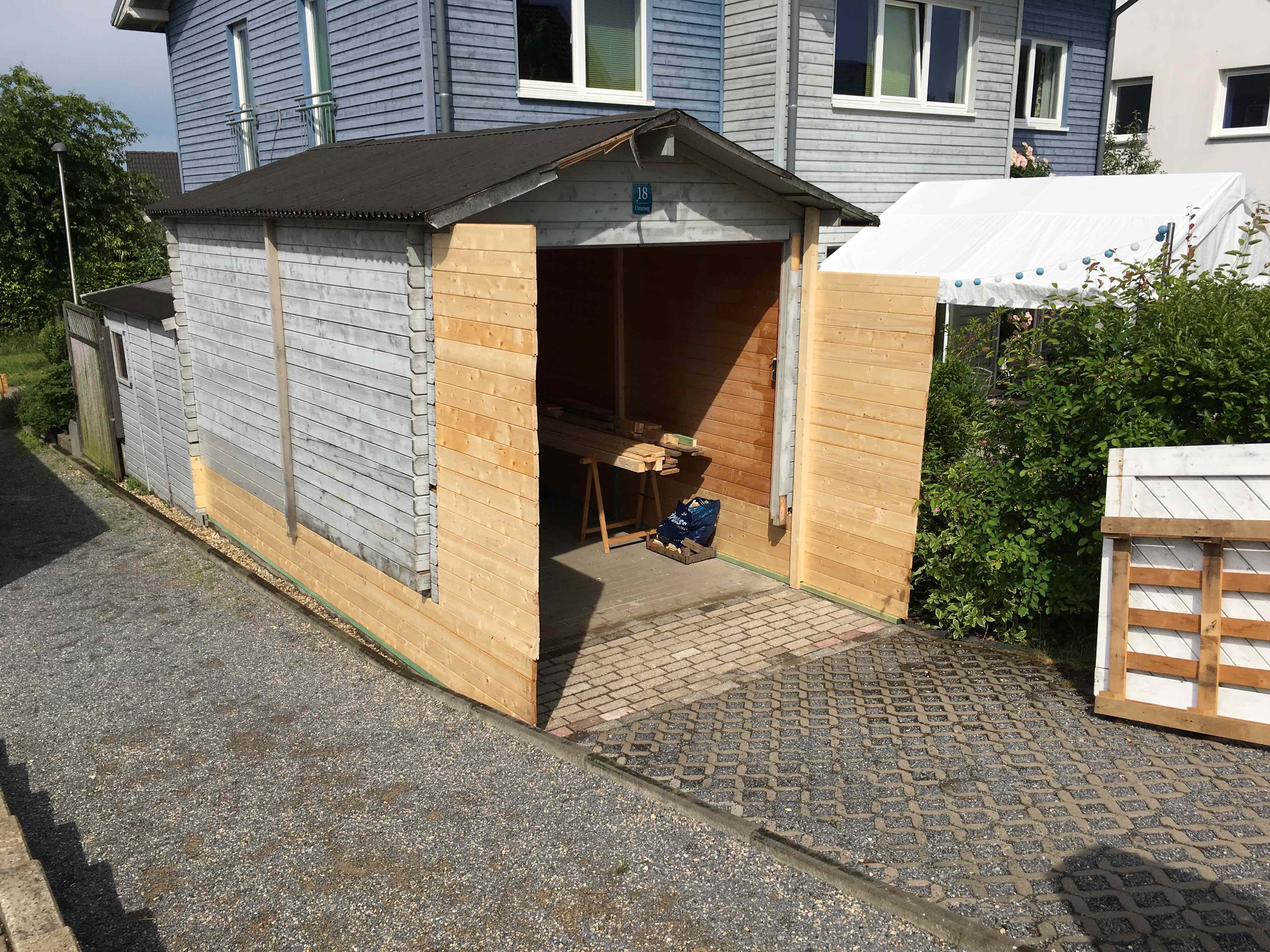 Hey, gewaschen hab ich ihn noch! Und festgestellt, dass überall Flugfarbe drauf war. Blöde Aktion ein Garagentor
