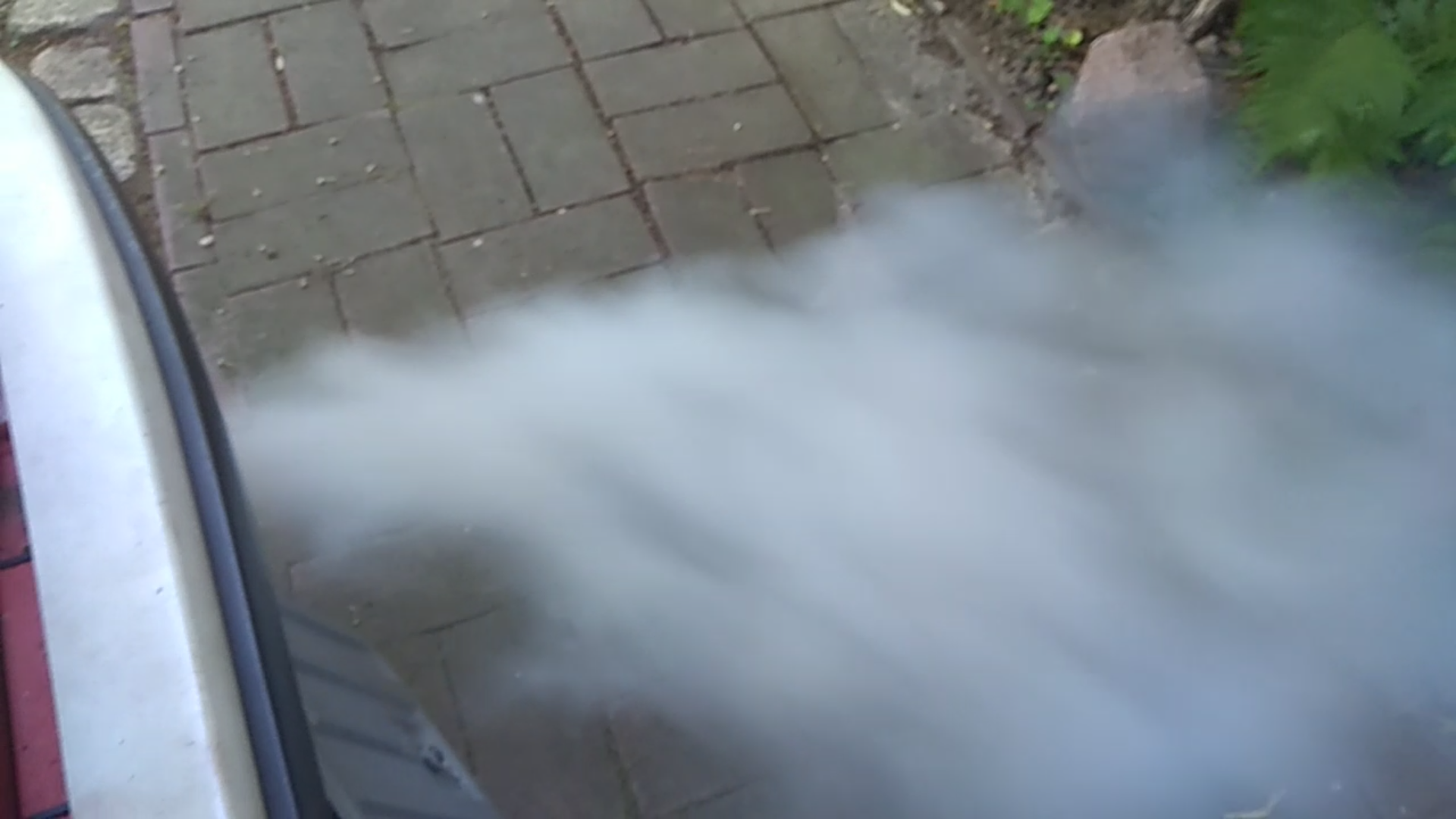 Moin in die Runde, heute habe ich nur kurz das Werkzeug in die Hand genommen. Luftfilter getauscht, die lockere Klemme am Vergaser begutachtet (ist genietet, Nieten sind aber fest. Muss erstmal so bleiben), geschaut, ob's unterhalb der Startlappe im Vergaser im Leerlauf trocken bleibt (jepp!) und wollte dann den Motor für den Kompressionstest warm laufen lassen. Aber nach etwa fünf Minuten Leerlauf mit einigen Stößen kam es hinten wieder derbe raus. Musste daraufhin abbrechen. Der Motor hat in der ganzen Zeit einen ganz ordentlichen Lauf gehabt, nahm auch Gas gut an. Hab mal Screenshots aus einem Video davon angehangen. Einmal Leerlauf, einmal leichter Gasstoß.