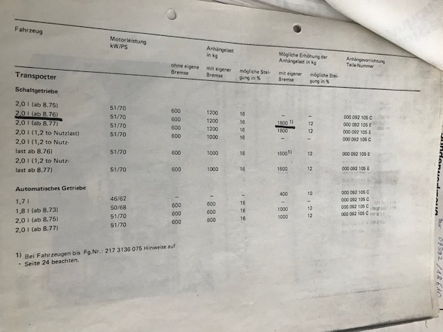 bullijochen hat geschrieben:Jetzt muss ich hier noch mal nachhaken. Ich war gestern bei der Dekra und hab mir meinen Motor eintragen lassen. Dann hab ich gedacht ich frage den noch mal wie das mit der Kupplung nun ist. Er sagte mir da im Brief nun 1200 kg drin stehen darfdas Auto nur 1200 ziehen, auch wenn ne 1800kg Kupplung verbaut ist. Ich müsste nun ein Schreiben von VW bringen in dem speziell für meie Fahrgestellnummer bescheinigt ist, das das Auto 1800 kg ziehen darf.