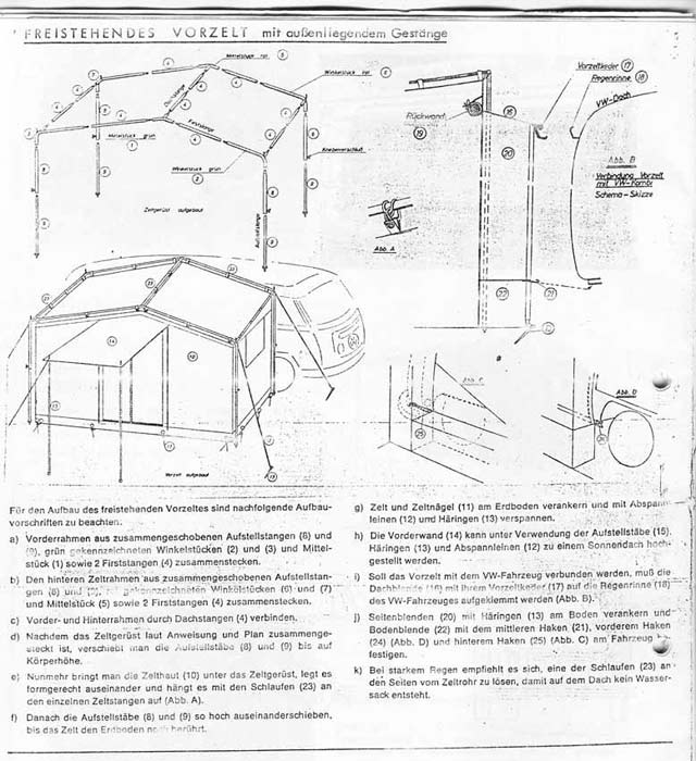 Ansonsten isses eigentlich wie immer: Wenn's die eine, richtige Lösung gäbe, dann gäb's all die anderen nicht. Mir ist für meine Zwecke ( = früh im Jahr für ein/zwei Wochen and der Ardeche; kalt, windig, gelegentlich auch mal zwei/drei Regentage) wichtig, daß es viel Platz bietet, alleine stabil steht und winddicht an den Bus anschließt. Die Tür zum Bus geht deswegen nicht ganz bis nach unten, und der Wind pfeift nicht unterm Wagenboden durch ins Zelt. Das Gestänge ist aus Stahlrohr, wurde auch schon mal geschweißt und hat sechs Beine. Das Dach ist aus LKW-Plane, der Rest Aerotex. Hersteller ist Herzog.