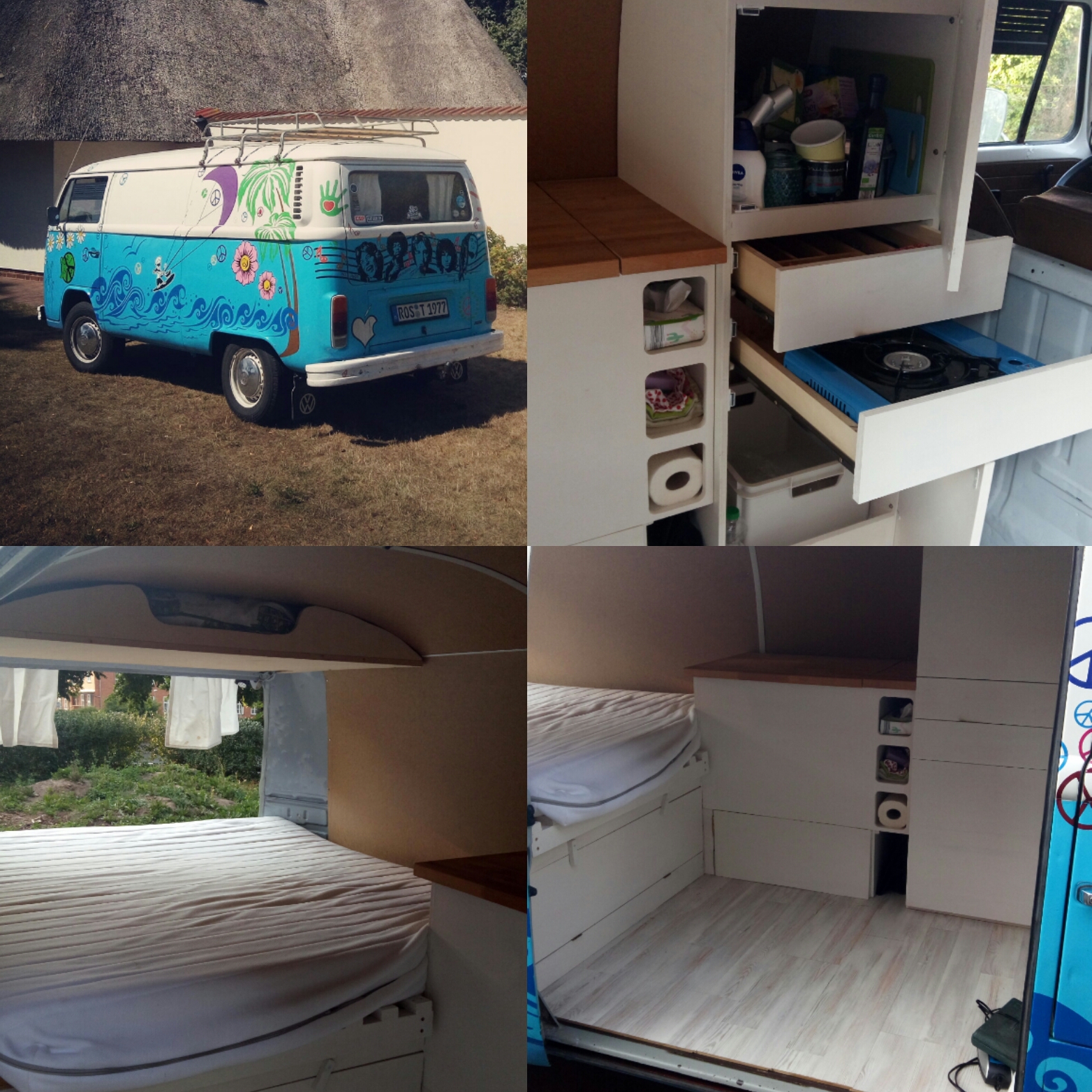 Auf dem letzten Maikäfertreffen war Teutovan mit dem roten T2 von der Homepage und hatte einige Möbel draussen ausgestellt. Der linke Seitenschrank mit Spüle oder Herdeinsatz von Fahrersitz bis Radlauf hinten sollte € 1.549 kosten.