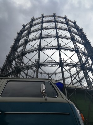 Ein schönes Industriedenkmal, aber zu groß, um den Bulli komplett aufs Foto zu bekommen, wenn man direkt unterhalb parkt