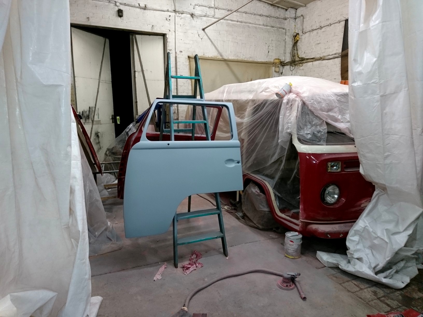 Am Bus ging es auch weiter, alle Flächen sind fertig, jetzt kommt Karosseriedichtmasse in die Fugen und dann wird gefüllert.