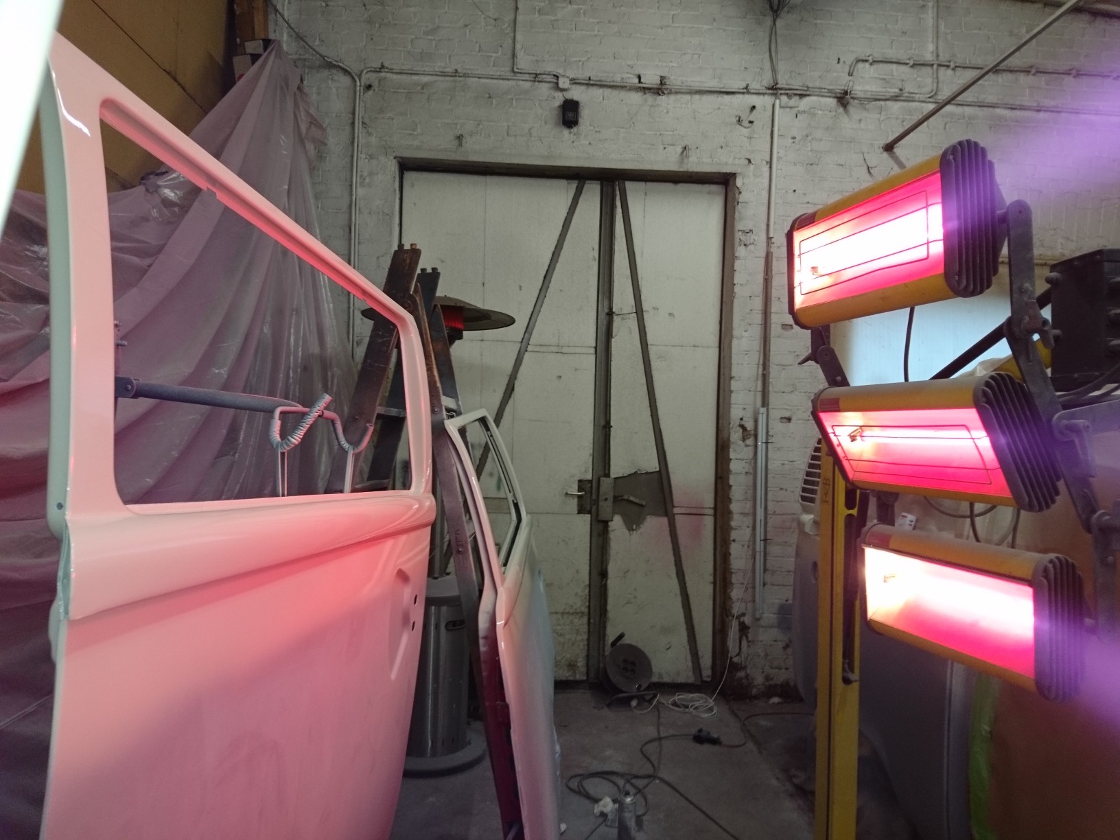 Ein guter Freund hat bei einer Werkstattauflösung diesen Infrarottrockner - ich weiß nicht mal wie das Ding heißt - abgestaubt und mir zur Verfügung gestellt. Irgendwie muss der Lack völlig durchtrocknen bevor ich abkleben kann. Langsam wird die Zeit knapp. Im März muss ich fertig sein
