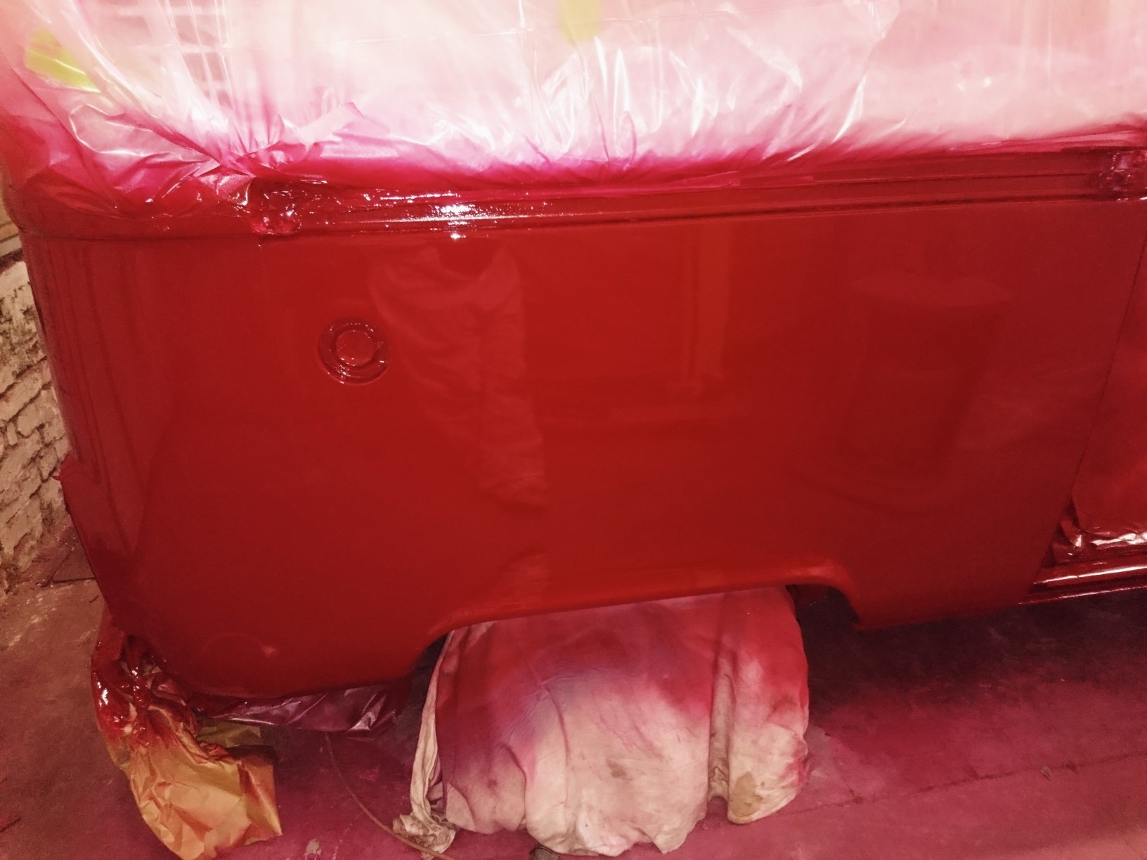 Der aktuelle Stand sieht so aus, dass ich den Bus nochmal komplett geschliffen habe, danach die Durchschliff stellen erneut lackiert habe und jetzt warte ich auf höhere Temperaturen um eine satte, gleichmäßig verlaufende Deckschicht zu bekommen.