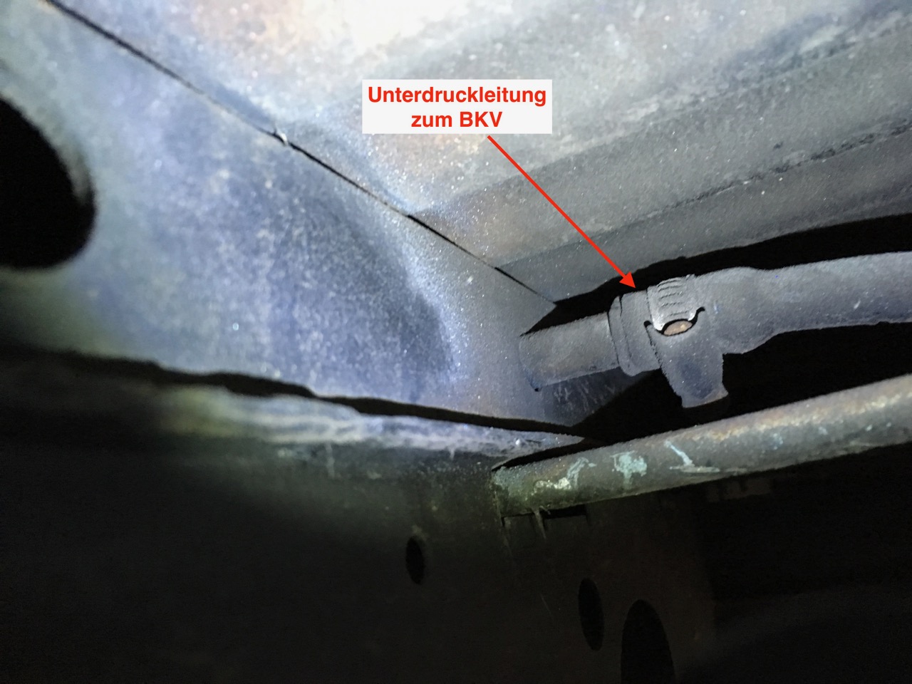 Unterdruckleitungsanschluss an die Metallleitung auf Höhe der D-Säule
