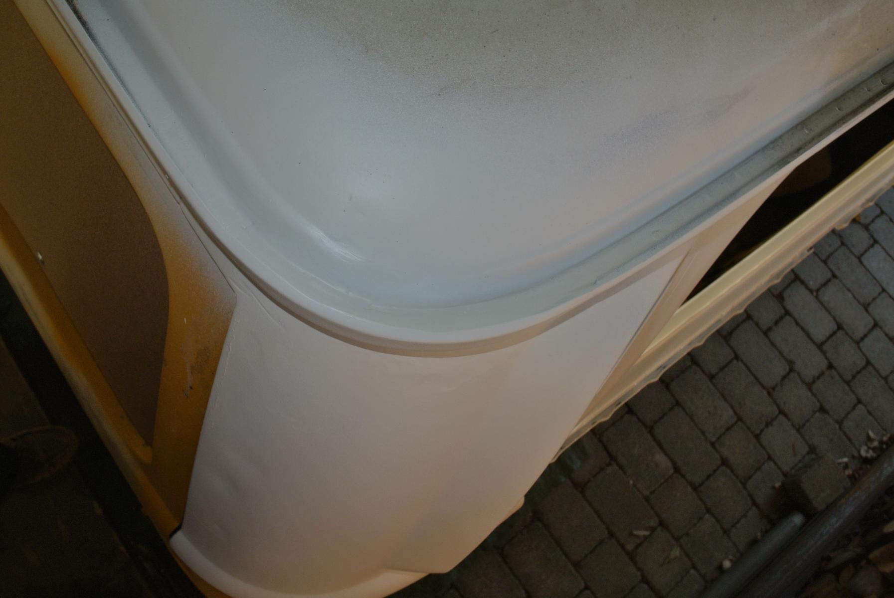 Ich habe mich aber doch dazu entschlossen, alles auf Vordermann zu bringen. Dabei lasse ich mir jetzt seit 4 Jahren Zeit. Wie es so schön heißt: "Der Weg ist das Ziel", werden nach und nach Karosserie, Innenraum und Mechanik bearbeitet. Beim Abschleifen einer schlecht nachlackierten hinteren Ecke kam ein verbeultes Blech zum Vorschein, das ein Spachtelkünstler geschickt kaschiert hatte. Hier habe ich ein neues Teil eingeschweißt, wie auch bei den beiden rückwärtigen Regenrinnenecken, die vom Rost schon zerfressen waren. Alles andere ist frei von Durchrostungen und weiteren Schäden. Im Winter habe ich mich ans Beledern der Innenverkleidungen gemacht. Aktuell bin ich an der Mechanik dran. Vergaserüberholen, Tankgeber wechsel und Einstellarbeiten sind weitere Bestandteile meiner Aktivitäten. Ich habe kürzlich ein 2-tägiges Seminar "Luftgekühlte VW-Motoren" bei der Handwerkskammer besucht - kann ich wärmstens empfehlen! Blecharbeiten, Lackieren, Sattlerarbeiten, Schrauben -geht irgendwie immer alles - und macht Spaß! Gerade bei der Mechanik werde ich aber sicherlich einige Fragen an euch haben und freue mich, von dem geballten Wissen der Forianer zu profitieren - Man(n) muss ja nicht alle Fehler alleine machen!